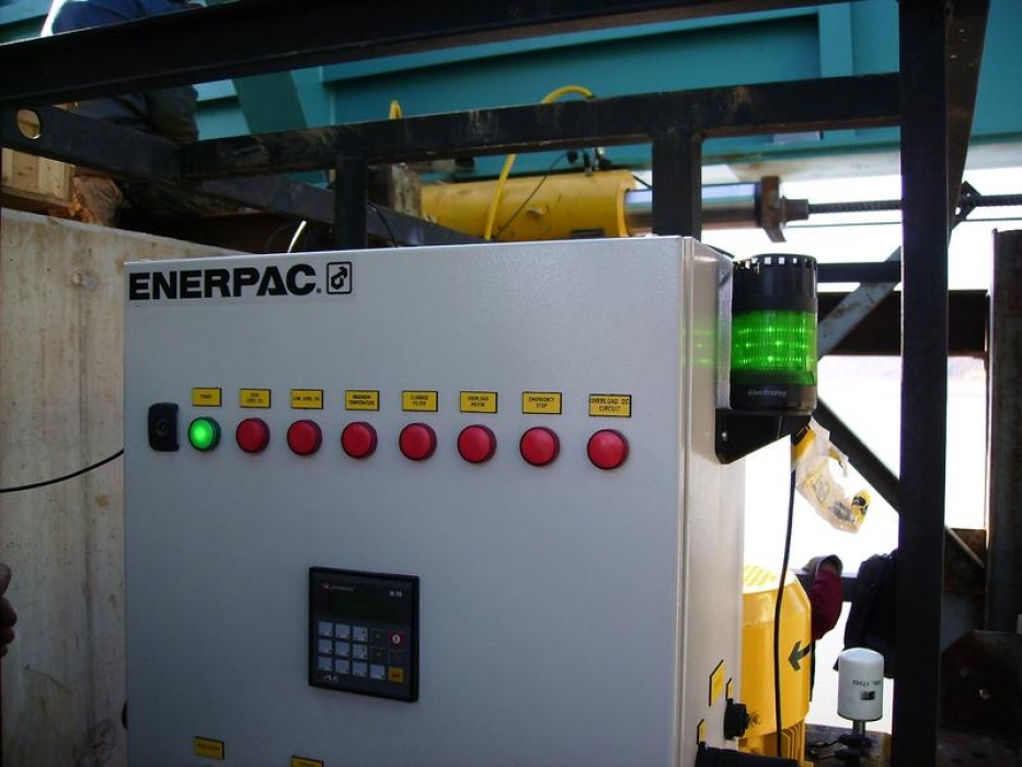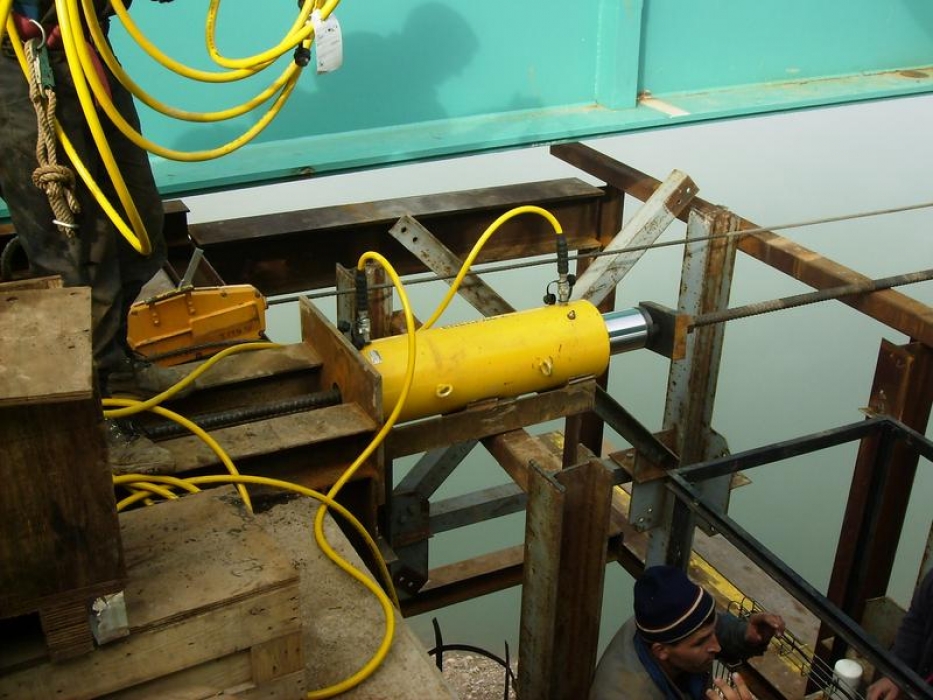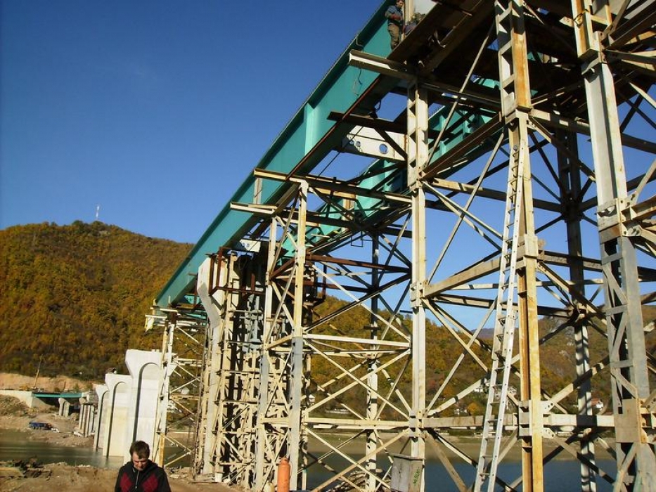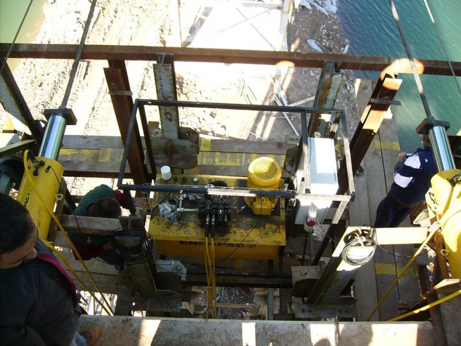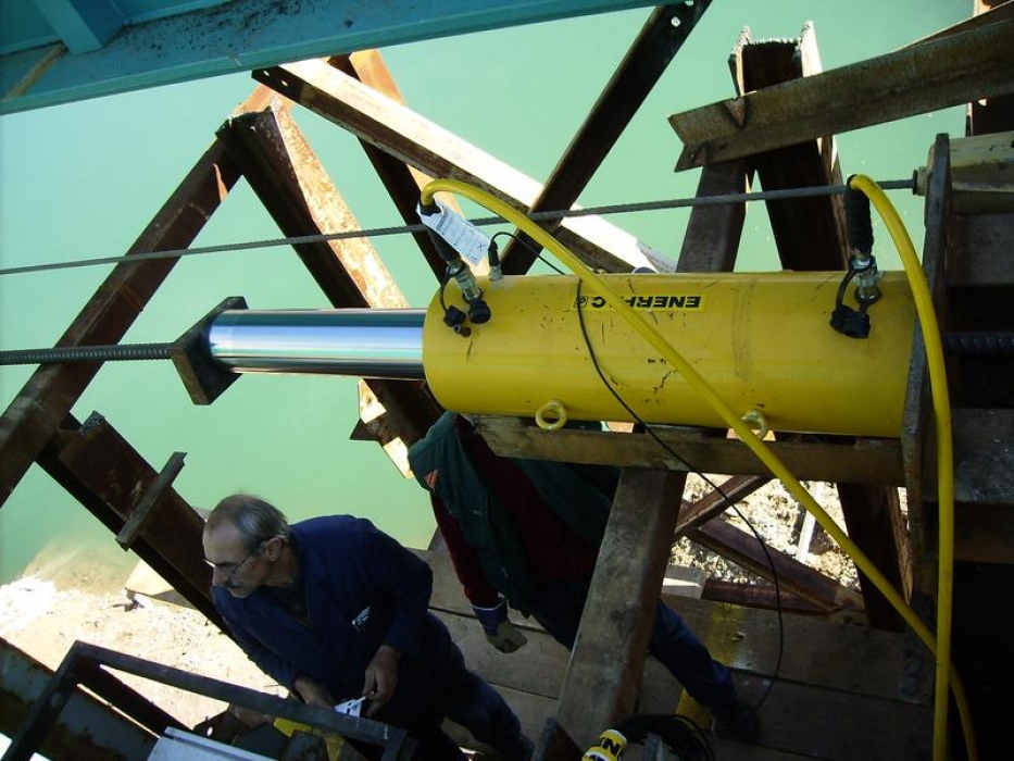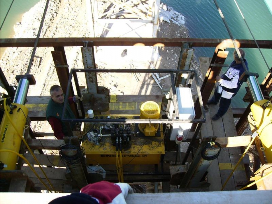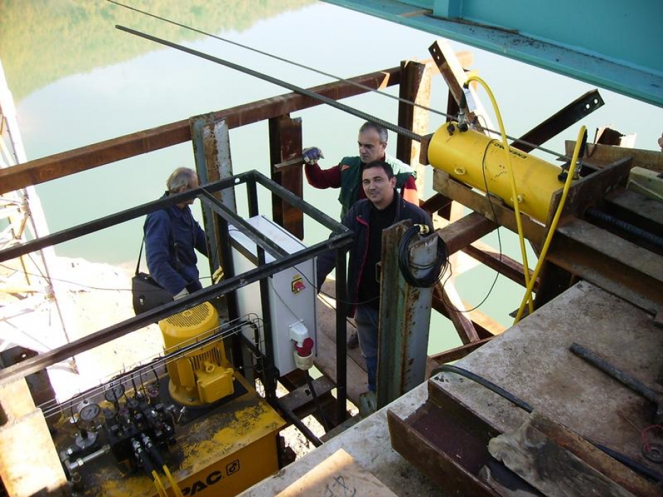 Launching of steel bridge with hydraulic system with steel barrs - Jablanica lake, Bosnia and HerzegovinaEnerpac launching system has been used for buliding the steel bridge on Jablanica lake in Bosnia and Herzegovina. Enerpac launching system has been used for controled launching of the steel brige. During the whole process, bridge has been secured with mechanical conection between construction of the bridge and the launching system.